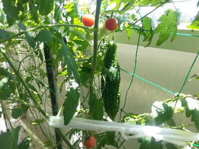 写真はベランダで栽培してるらしいトマトとゴーヤ♪
