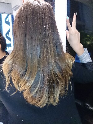 前歴、毛先は少しブリーチのなごりが残っていて、中間部分は10トーンのアッシュ、根本はカラー事態は1年ぐらいしていない感じです。